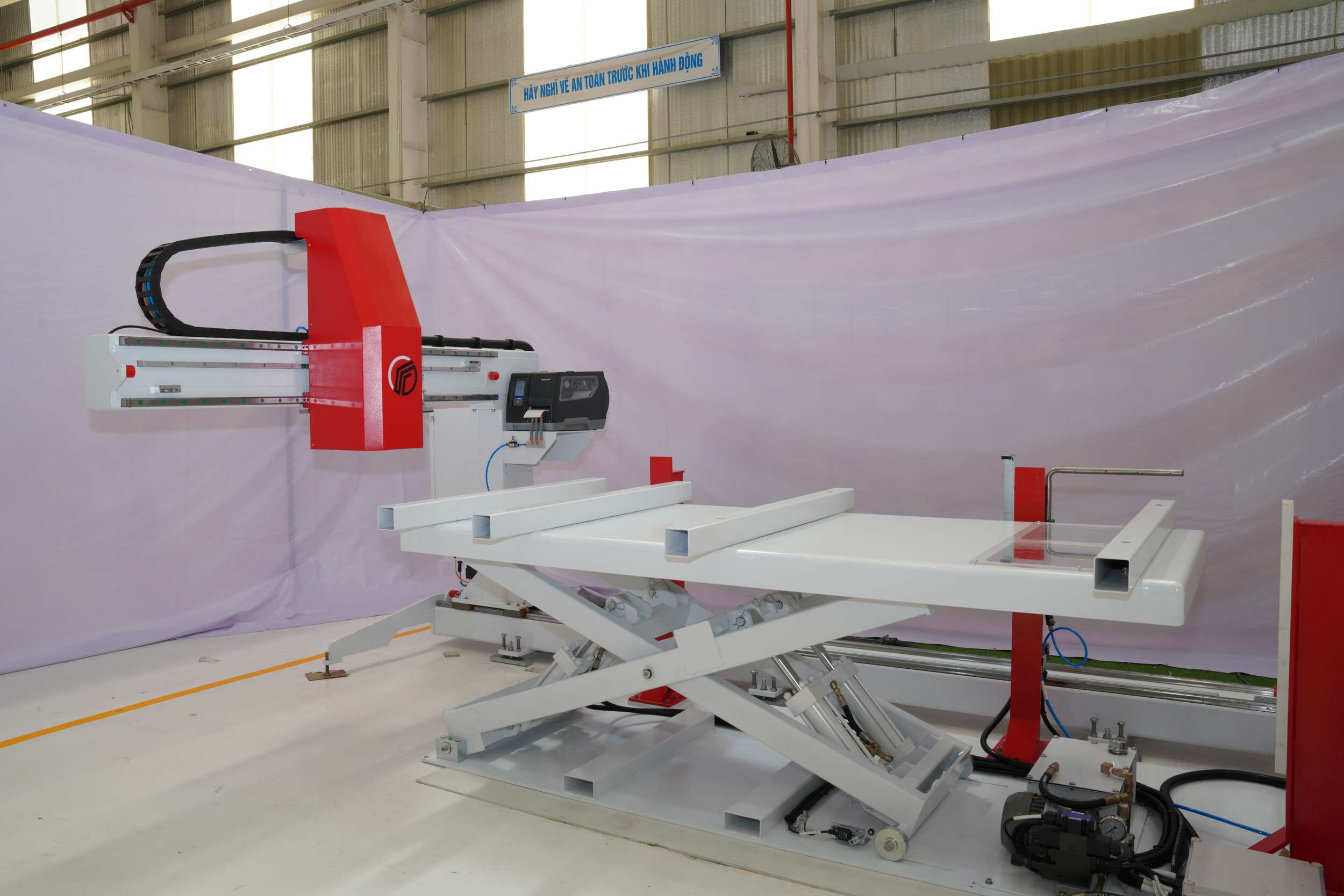Vertical drilling head with 5+4 independent mandrels. 4 Independent
