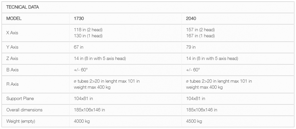 Max capacity of support surface: 1000 kg/mq – Speed: 0->40000 mm/min – 15” TFT colour screen, membrane Keyboard with built-in mouse.