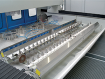 The wide modularity of the tools rack allows to adapt the table to each need. The warehouses can be installed rear, side or also under the beam for a tool change in less than 10 seconds.