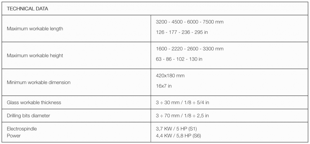 • possibility to work both rectangular and shaped glass sheets (one rectilinear side required)