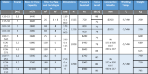 - High efficiency electro-fan with curve/backward (negative) blades, electric panel and cleaning system control unit integrated