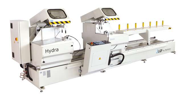 Full protection of the sawblades by means of safety hoods with automatic closing